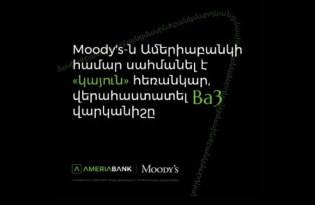 Moody’s վարկանիշային գործակալությունը Ամերիաբանկի վարկունակության բազային գնահատականը (BCA) b1-ից բարձրացրել է bа3` վերահաստատելով երկարաժամկետ ավանդների Ba3 վարկանիշը, և վերանայել է վերջինիս հեռանկարը` սահմանելով «կայուն»` նախկին «բացասականի» փոխարեն: