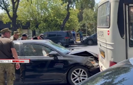 ՊՊԾ աշխատակիցներն ու պարեկները «միջամտում են» նախագահականի դիմացի ավտովթարի հետևանքների վերացմանը. Տեսանյութ