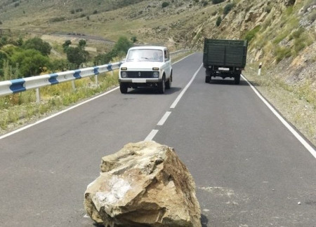 Փրկարարները քաղաքացիների հետ համատեղ քարը հեռացրել են ճանապարհից: