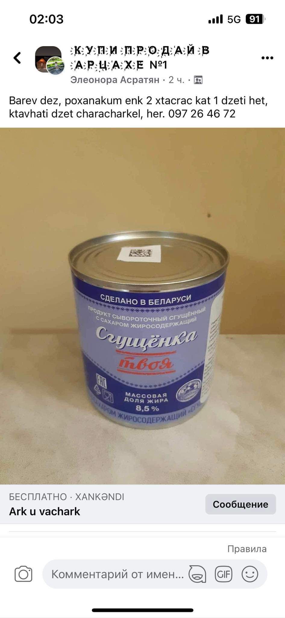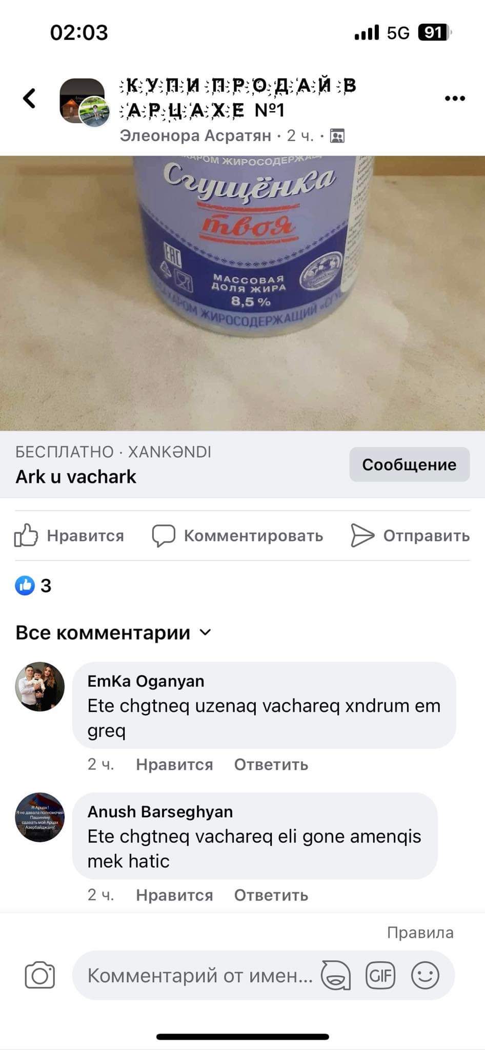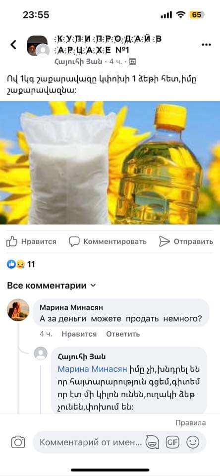 Արցախաբնակ Արմեն Խաչատրյանը ֆեյսբուքյան իր էջում գրել է. «Բոլոր նրանց համար, ովքեր հարցնում են՝ մեր մոտ ինչ վիճակ է»:
