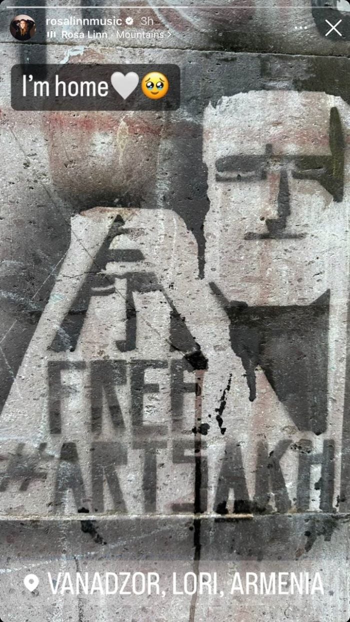 Ինստագրամյան իր էջի «Սթորի» բաժնում նա հրապարակել է «Դեդո-Բաբո» հուշարձանի գրաֆիտի լուսանկարով՝ #FreeArtsakh մակագրությամբ՝ հայտնելով, որ եկել է Հայաստան: