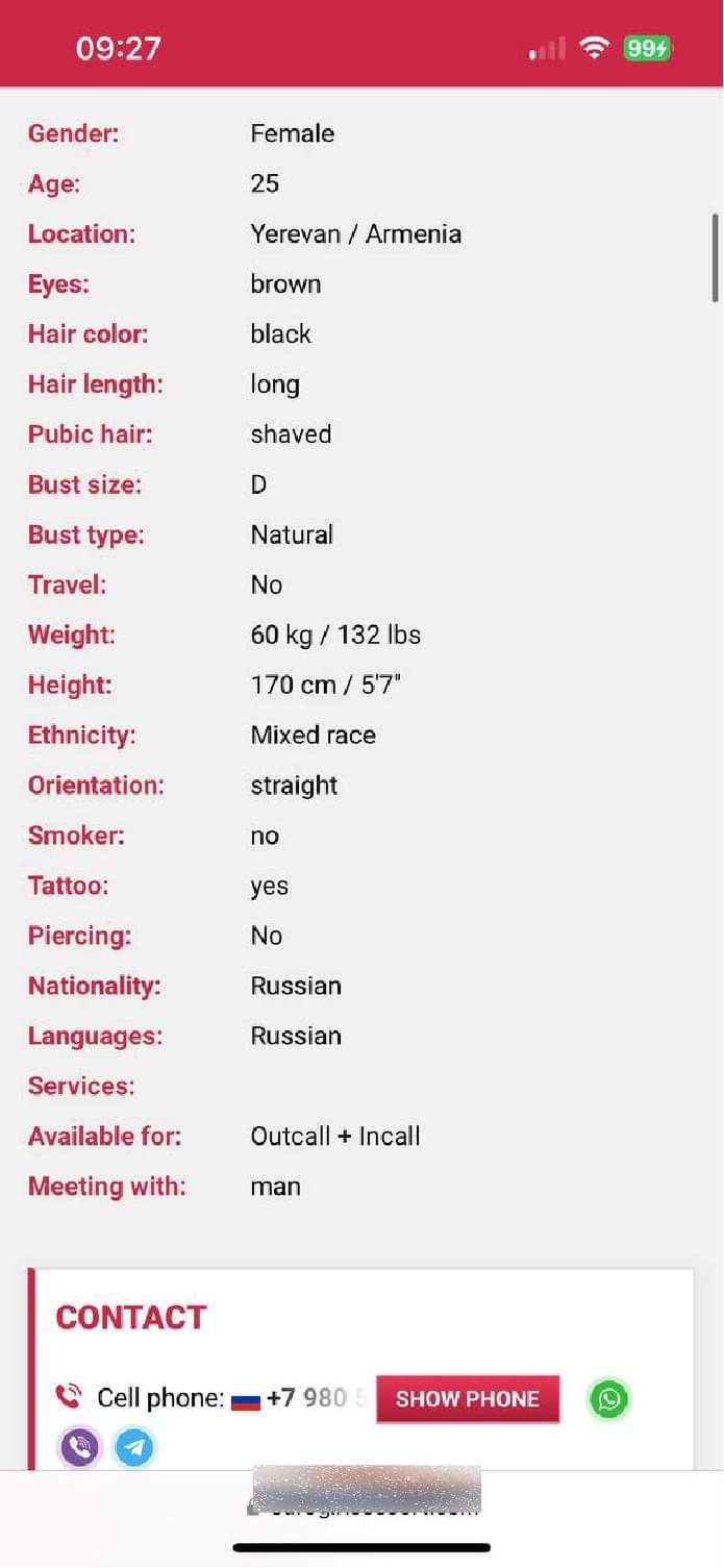 Իմ կողմից հրապարակված կայքում և տելեգրամ ալիքներում ներկայացված են նրանց տարիքը, քաշը, հասակը, իրենց ծառայությունների արժեքը։ Ի դեպ, մեկ ժամի արժեքը տատանվում է 150-250 $ (ԽԱՅՏԱՌԱԿՈՒԹՅՈՒՆ)։ Հիմնականում փոքր կենտրոնում վարձակալած տները դարձրել են մինի «հասարակաց» տներ, որտեղ հերթի տակ «ծառայություններ» են մատուցում (կասկածներ ունեմ, որ թմրամիջոցներ էլ կարող են վաճառել), և անխուսալի է սեռավարակի տարածումը։ Ստեղծվել են պայմաններ, երբ ընտանիքի վաստակած գումարների մի մասը վատնվում է բույքմեյկերներում (խաղադրույք կատարելով), մյուս մասը՝ նորաստեղծ «հասարակաց» տներում, որտեղ հնարավոր է նրանց հրամցնեն և՛ թմրամիջոցներ, և՛ «սեռավարակ»։