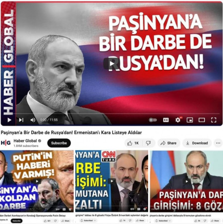 Կից ներկայացնում եմ թուրքական ամենախոշոր հեռուստաալիքների վերջին օրերի մի քանի թողարկում, որ նվիրված է Հայաստանում տեղի ունեցող իբր հեղաշրջմանը։ Թուրքերենում հեղաշրջում թարգմանվում է «darbe»։
