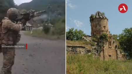 Այսօր՝ սեպտեմբերի 27-ին, «X» սոցիալական կայքում տարածվել է տեսանյութ, որում երկու ադրբեջանցի զինվոր կրակում են 13-րդ դարում կառուցված Չարեքթարի վանքի վրա։