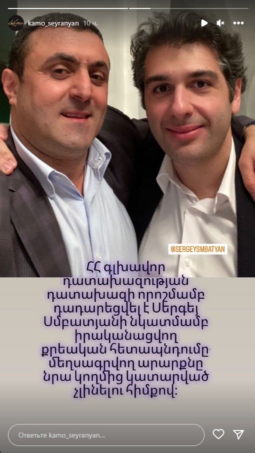 Կամո Սեյրանյանը հրապարակել է Սերգեյ Սմբատյանի հետ լուսանկար՝ հայտնելով իր աջակցությունը
