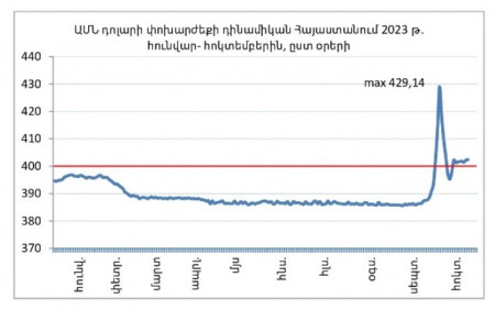 News.am-ը վերլուծական անդրադարձ է ակատարել դրամի փոխարժեքի տատանումներին, գրել. «Հոկտեմբերի սկզբին Հայաստանում ԱՄՆ դոլարի պաշտոնական փոխարժեքն այս տարի առաջին անգամ գերազանցեց 400 դրամի շեմը։ Մի քանի օր անց փոխարժեքը «թեթևակի» հետ գլորվեց իր նախկին դիրքերին, բայց հետո կրկին գերազանցեց նշված նշագիծը (տես գծապատկերը):