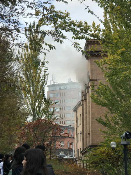 Infocom-ի տելեգրամյան ալիքից տեղեկանում ենք, որ հրդեհը բռնկվել է ԵՊՀ մասնաշենքերից մեկում, որտեղ գտնվում են Քիմիայի, Աշխարհագրության ֆակուլտետները, Ֆարմացիայի ինստիտուտը։ Լուսանկարը՝ նույն աղբյուրից: