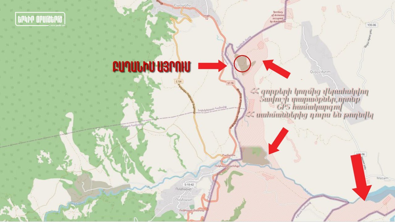 Մեզ հասած այդ տեղեկատվությունն առավել հիմնավորվեց ՀՀ վարչապետի աշխատակազմից ստացված գրավոր տեղեկատվությամբ, ըստ որի՝ Ադրբեջանը բարձրաձայնում է հետևյալ տեղանունները. Բաղանիս Այրում, Աշաղը (Ներքին) Ոսկեպար, Խեյրիմլի, Կըզըլ Հաջիլի:
