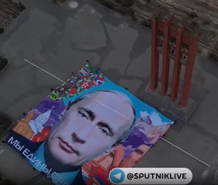 Հայաստանի Հանրապետության Արմավիրի մարզի Սարդարապատ հուշահամալիրում հայ կամավորները հսկայական պաստառ են պարզել՝ այդպիսով շնորհավորելով ՌԴ նախագահ Վլադիմիր Պուտինին նախագահական ընտրություններում տարած հաղթանակի կապակցությամբ։