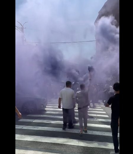 «Տավուշը՝ հանուն Հայրենիքի» շարժման այսօրվա ակցիային մասնակցող երիտասարդները քիչ առաջ մանուշակագույն ծխագլաններով պայքարի խորհրդանիշ մանուշակագույնով «ողողեցին« Փաշինյանին սպասարկող ՆԳՆ մերձակայքը: