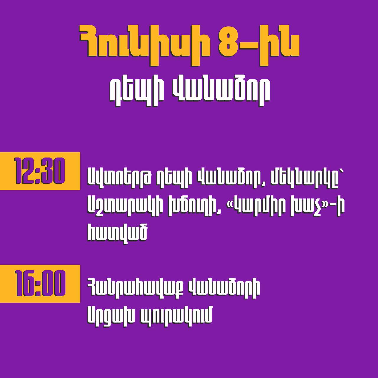 Վաղը՝ հունիսի 8-ին, ավտոերթով Սրբազան Շարժման մասնակիցները՝ Բագրատ Սրբազանի գլխավորությամբ գնալու են Վանաձոր, որտեղ ժամը 16:00-ին տեղի կունենա հանրահավաք: