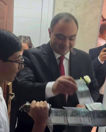 Դրանցում երևում է, թե ինչպես է պետական պաշտոնյան ավելի քան տասը 20 հազար դրամանոցներ շարում դուռը փակած երեխայի պահած թրի վրա՝ հարսի մուտքը թույլ տալու համար։