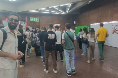 Էս էլ էսպես` հենց հիմա, Մետրոյի Հանրապետության Հրապարակ կայարանում ուղևորները հերթի մեջ սպասում են ժետոն գցելու իրենց հերթին։