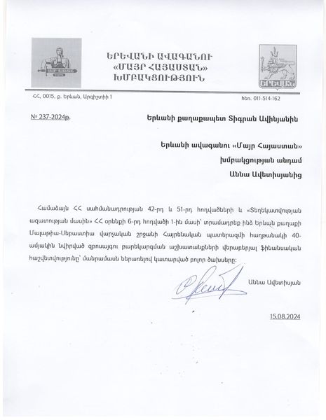 Երևանի ավագանու «Մայր Հայաստան» խմբակցության անդամ Աննա Ավետիսյանի ֆեյսբուքյան էջից