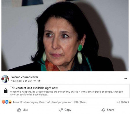 Վրաստանի նախագահ Սալո Զուրաբաշվիլիի էջում հիմա դատարկ հղումն է։ Նա չի հեռացրել կիսած հղումը։