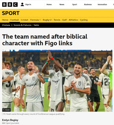 «Բի-Բի-Բի սպորտ»-ն անդրադարձել է Եվրոպայի Կոնֆերենցիաների լիգայի հիմնական փուլի շրջանակում այսօր կեսգիշերին (Երևանի ժամանակով) նախատեսված «Չելսի»-«Նոա» հանդիպմանը: Աշխարհահռչակ լրատվամիջոցը ներկայացրել է «Նոա» ակումբի ստեղծման պատմությունը, նշել, որ թիմը ի սկզբանե «Արցախ» անվանումն է ունեցել, որը փոխել է 2019-ին: Անդրադարձ է արվել նաև «Նոա»-ի վերջին ելույթներին, դարպասապահ Չանչարևիչի՝ ԱԷԿ-ին սեփական տուգանային հրապարակից արված հարվածով խփած գոլին, զրուցել հայկական ակումբի ներկայացուցչի հետ: