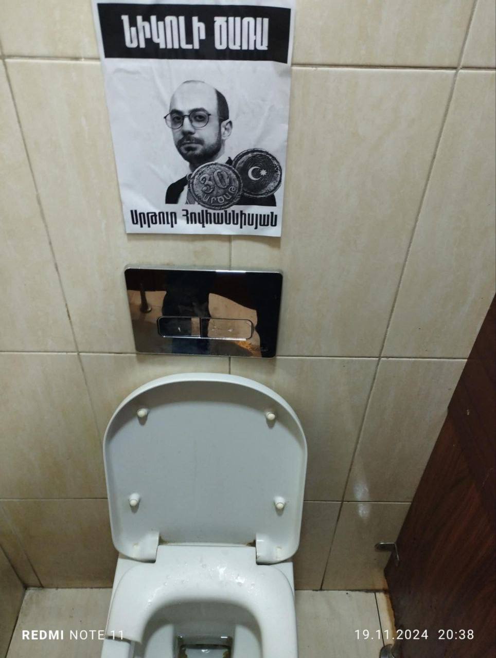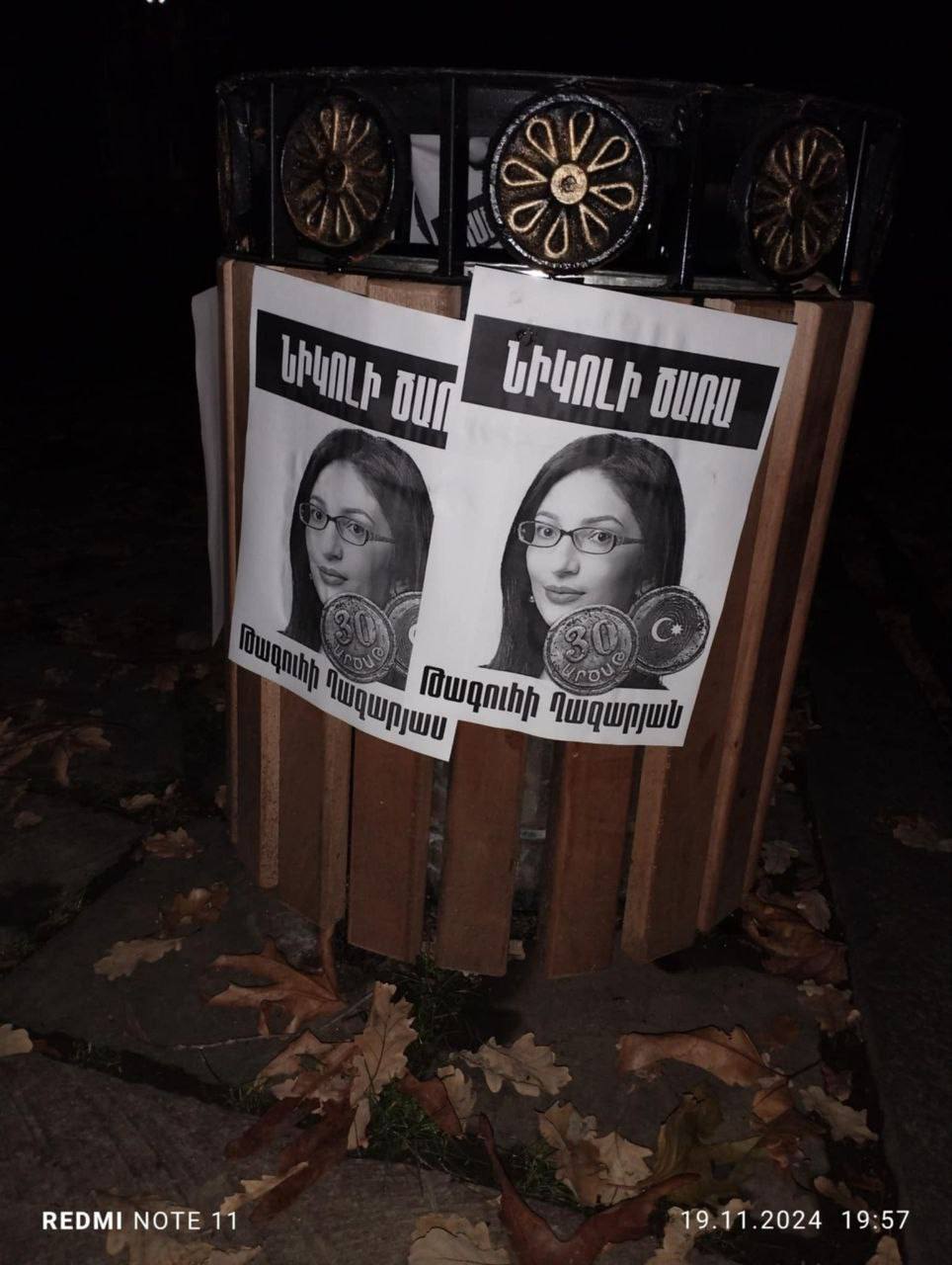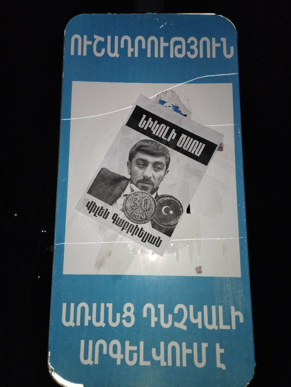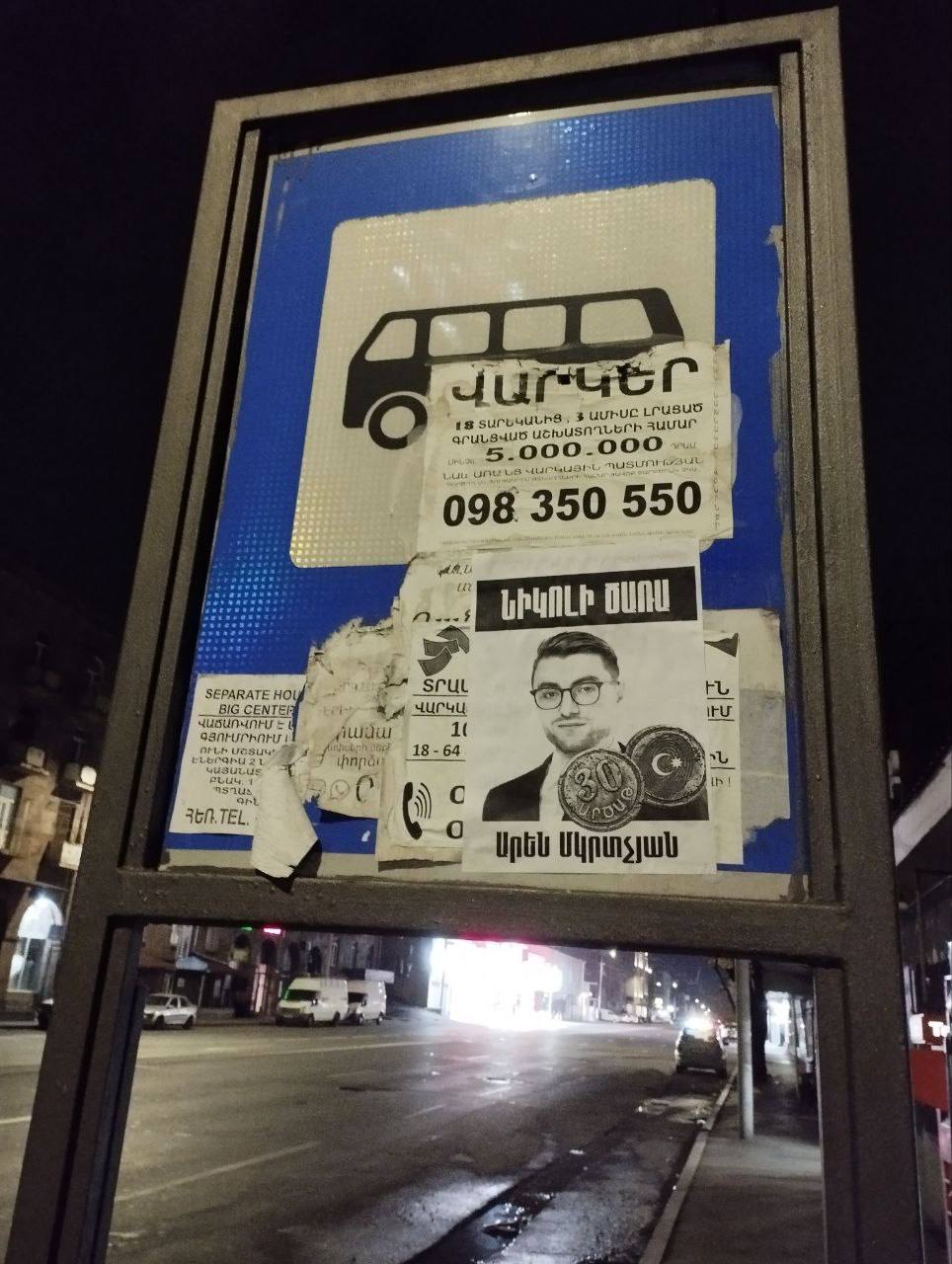 «Նիկոլի ծառա» գրառմամբ նկարներ են փակցվել Երևանի տարբեր փողոցներում։ Հայտնում են «Սրբազան պայքար» տելեգրամյան ալիքում։