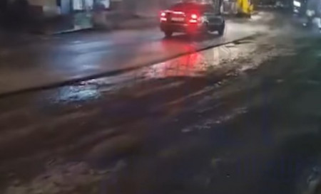 Հենց էս պահին տեղի է ունենում ասֆալտապատման աշխատանք, էս եղանակին՝ անձրևի ժամանակ ասֆալտա, որ լցնում են ջուրը։