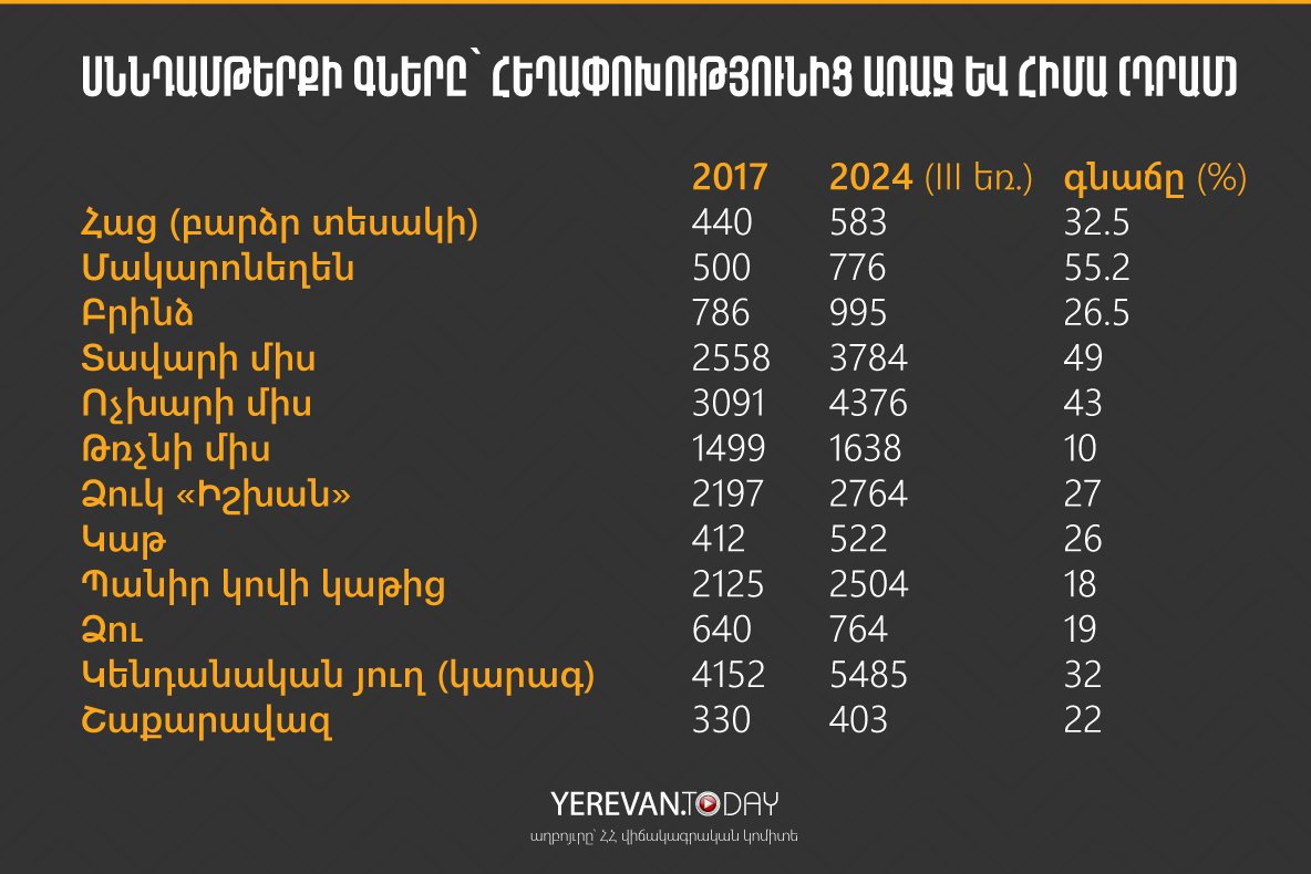 Սննդամթերքի գները՝ հեղափոխությունից առաջ և հիմա․ ինֆոգրաֆիկա. նիկոլական Հակոբ Արշակյանը ՍՏԵԼ է
