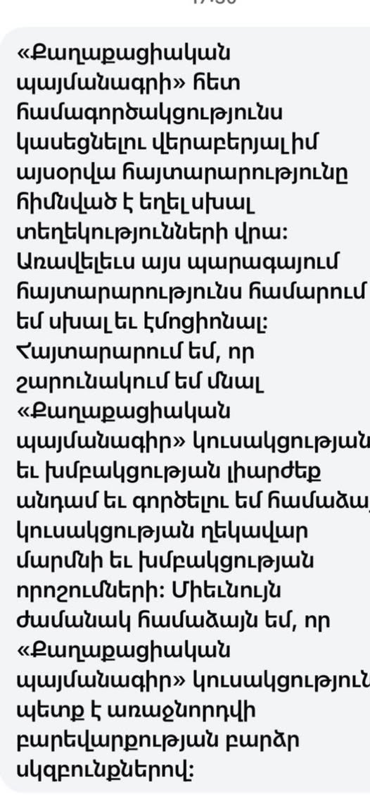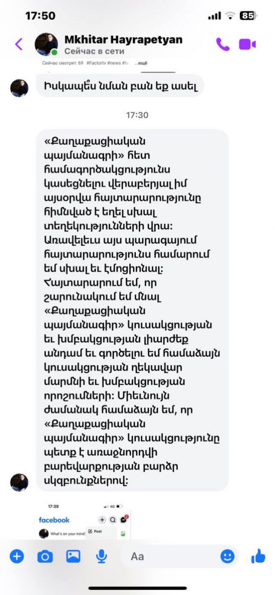 «ՔՊ-ի հետ համագործակցությունը կասեցնելու վերաբերյալ հայտարարությունս համարում եմ սխալ»․ Հակոբ Ասլանյանը ֆեյսբուքում նոր հայտարարություն է արել