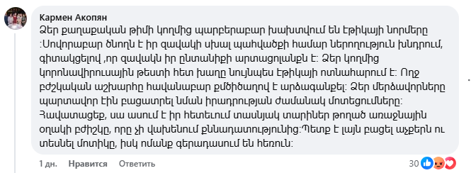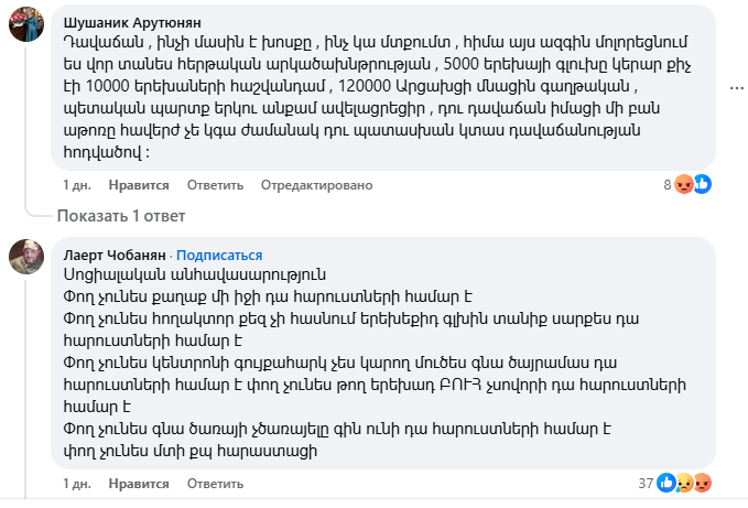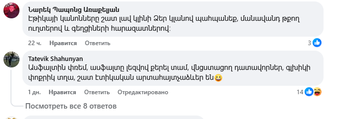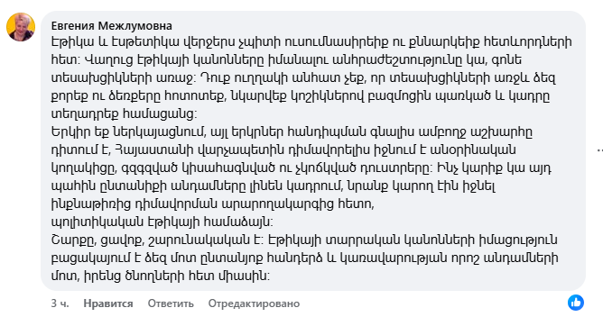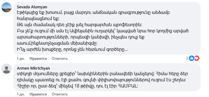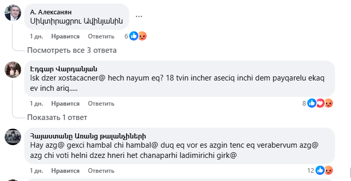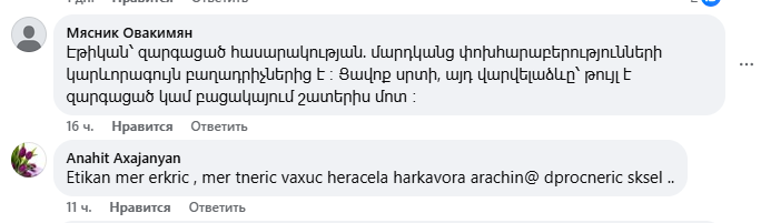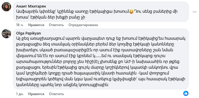 18+ մեկնաբանություններ՝ Փաշինյանի՝ Էթիկա սովորեցնելու գրառման տակ