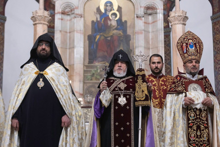 Պատարագիչն էր Արցախի թեմի առաջնորդ Գերաշնորհ Տ. Վրթանես եպիսկոպոս Աբրահամյանը։