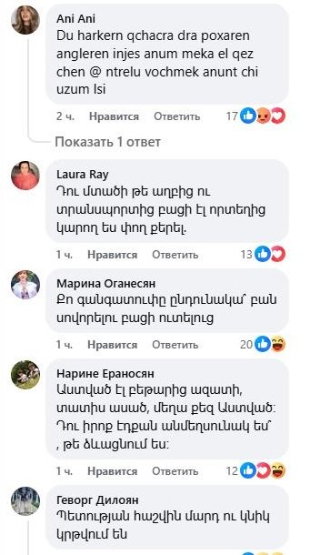 Yerevan.Today-ը առանձնացրել է բազմաթիվ բացասական մեկնաբանությունների միայն մի մասը։