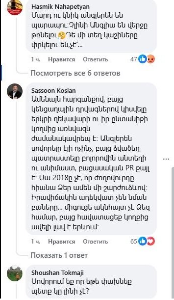 18+․ Հայհոյախառն և զվարճալի գրառումներ Փաշինյանի՝ անգլերեն սովորելու տեսանյութի տակ (լուսանկար)