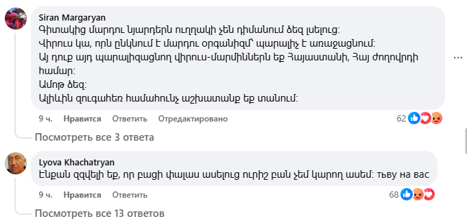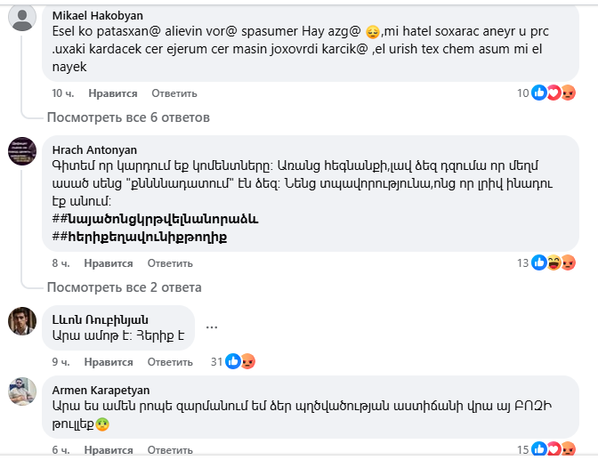 Yerevan.today-ը հրապարակել է բազմաթիվ քննադատական մեկնաբանություններից ընդամենը մի քանիսը։