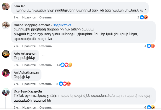 18+․ «Ինչքան էլ քեզ ․․․-ի տեղ դնես, պատասխան տալու ես»․ ի՞նչ է կատարվում Փաշինյանի էջում