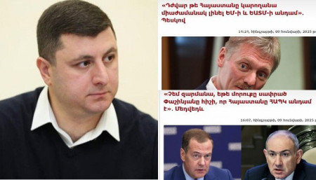 Ի դեպ, ՀԱՊԿ-ի, ՌԴ-ի հետ հարաբերություններում ստեղծված ճգնաժամի պարագայում նույնիսկ ՀՀ-ից հայտարարում էին ԵԱՏՄ կարևորության և այնտեղից ստացվող մեծ օգտակարությունից, սակայն Մոսկվայից զգուշացրեցին, որ չեն պատրաստվում այլևս «աչք փակել» եվրոպացիների հետ խորացող «խաղերի» վրա: Կրկնում եմ` այս գործընթացի տնտեսական ծանր հետևանքների մասին տնտեսագետները դեռ կխոսեն, սակայն սա ուղիղ խոցելիություն է ապահովելու քաղաքական ու անվտանգային տեսանկյունից: