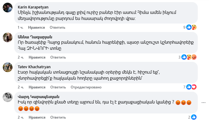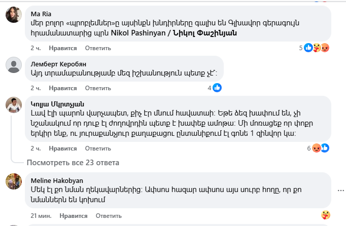Օգտատերերը շատ բուռն են արձագանքել Փաշինյանի գրառմանը՝ մեր երկրում խնդիրների մեղավոր համարելով հենց իրեն։