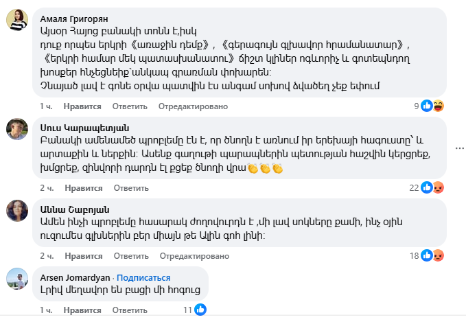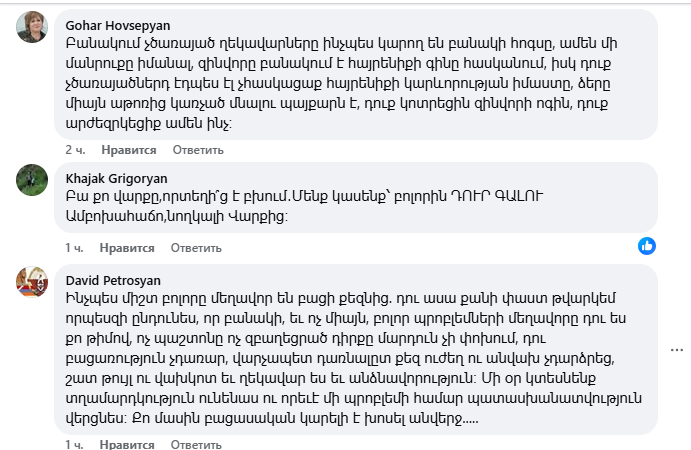 Փաշինյանի՝ բանակի մասին գրառմանը քաղաքացիները քննադատությամբ են արձագանքում