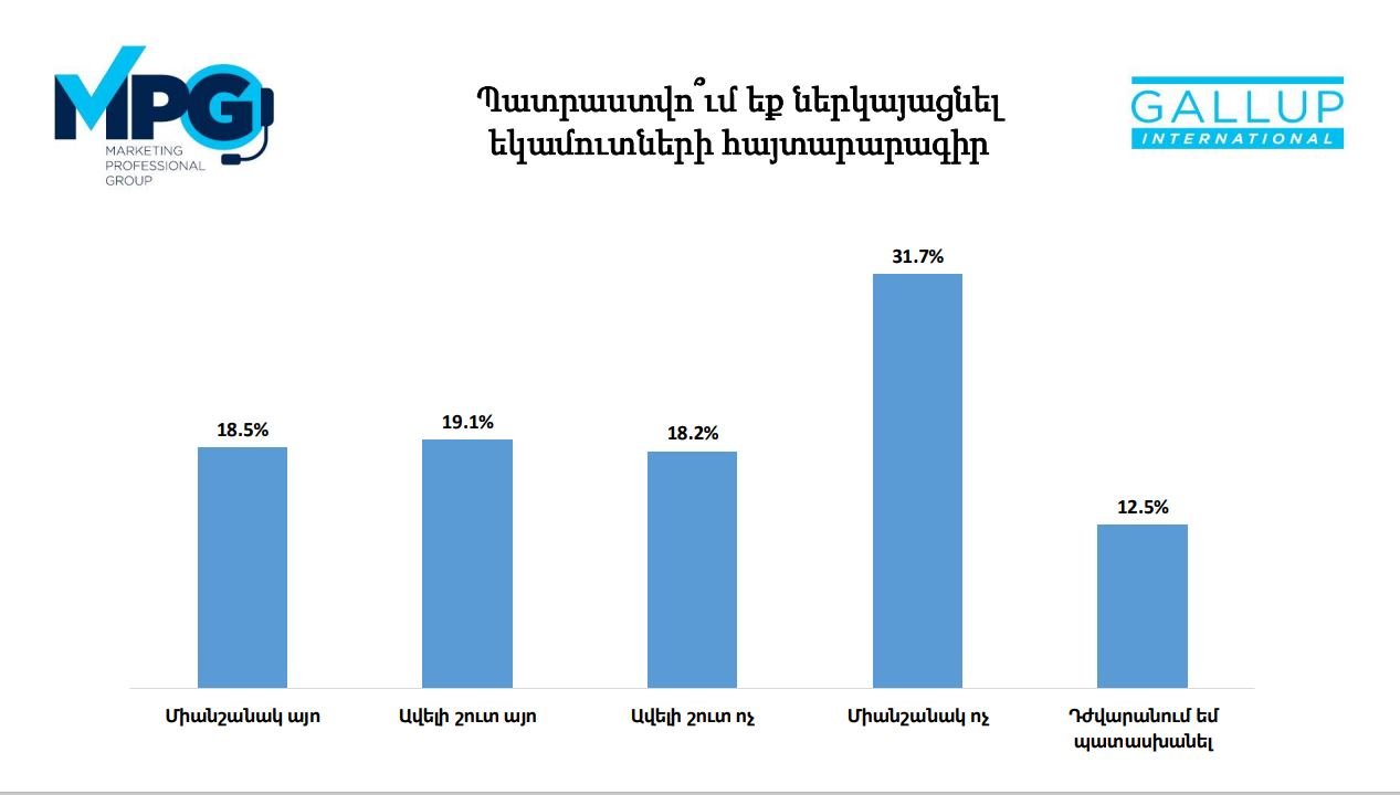 «Պատրաստվո՞ւմ եք ներկայացնել եկամուտների հայտարարագիր» հարցին քաղաքացիների պատասխանները բաշխվել են հետևյալ կերպ․