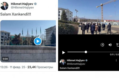 «Փետրվարի 11-ին Ադրբեջանի ֆաշիստական Հանրապետության նախագահի օգնական Հիքմեթ Հաջիևը X-ի իր էջում հրապարակել է տեսանյութ՝ ժամանակավորապես բռնազավթված Արցախի Հանրապետության մայրաքաղաք Ստեփանակերտից։