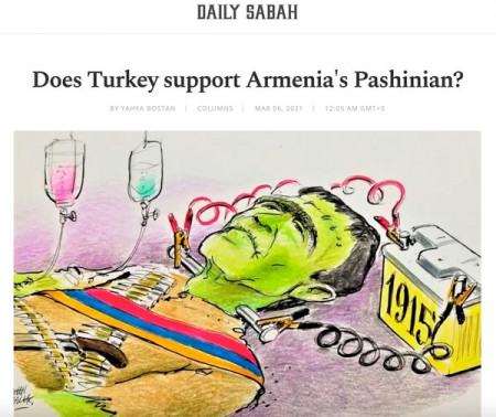 Հ.Գ. Նկարում Թուրքիայի իշխանությունների գլխավոր մեդիաներից «Daily Sabah»-ի հոդվածներից մեկն է, որտեղ հեղինակները պնդում են, որ Թուրքիան պետք է աջակցի Հայաստանի դե-ֆակտո վարչապետին, քանի որ վերջինս կիրականացնի բոլոր թուրքական պահանջները։