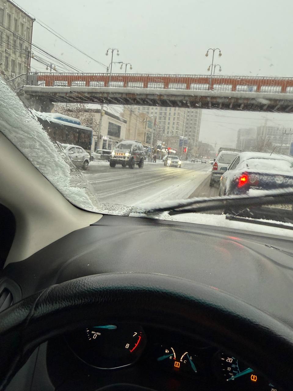 Երևանում ձյան տեղումները տրանսպորտային կոլապսի պատճառ են դարձել։