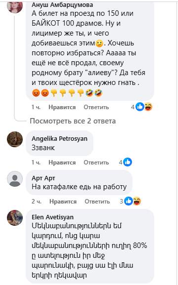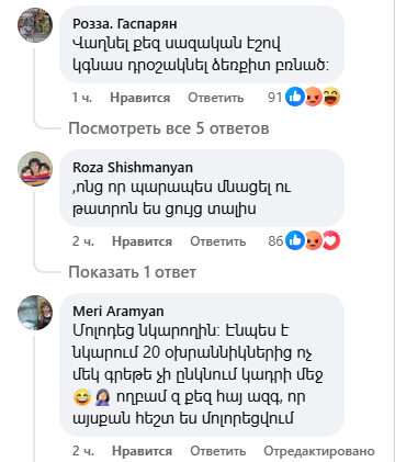 Նիկոլ Փաշինյանի տեսանյութի տակ բազմաթիվ մեկնաբանություններ են, ինչպես միշտ՝ հայհոյանք, վիրավորանք, քննադատություն։ Փաշինյանին մեղադրում են բեմադրություն անելու համար։