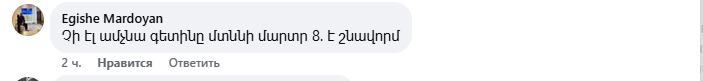 Նիկոլ Փաշինյանը ֆեյսբուքյան էջում շնորհավորել է մարտի 8-ի առիթով։ Սակայն, անգամ շնորհավորական գրառմանը քաղաքացիները պատասխանել են հայհոյանքներով։