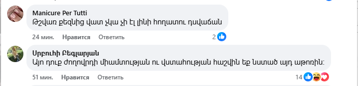 Yerevan.Today-ը առանձնացրել է բազմաթիվ քննադատական մեկնաբանություններից ընդամենը մի քանիսը։
