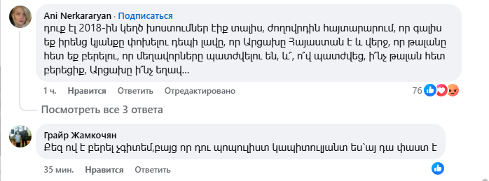 Նիկոլ Փաշինյանը վերջին երկու ժամում երկու գրառում է արել՝ ասելով, թե իրեն ժողովուրդն է բերել իշխանության։ Նրա գրառումների տակ հարյուրավոր մեկնաբանություններ կան, գրեթե բոլորը՝ հայհոյանք, ծաղր, քննադատություն ու ափսոսանք, որ իշխանության է եկել։