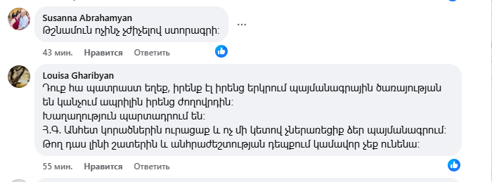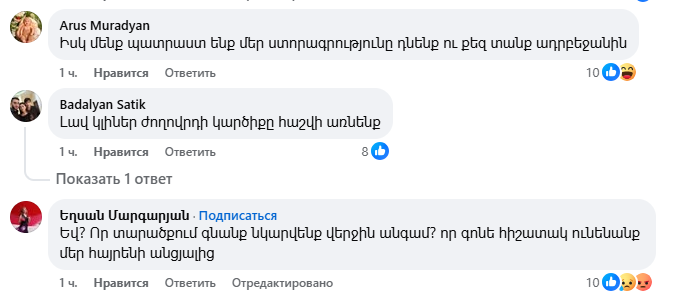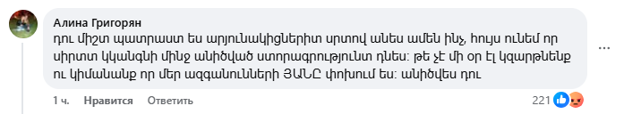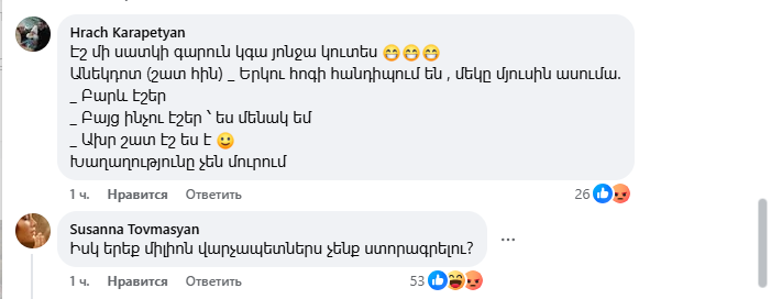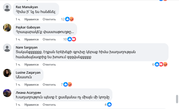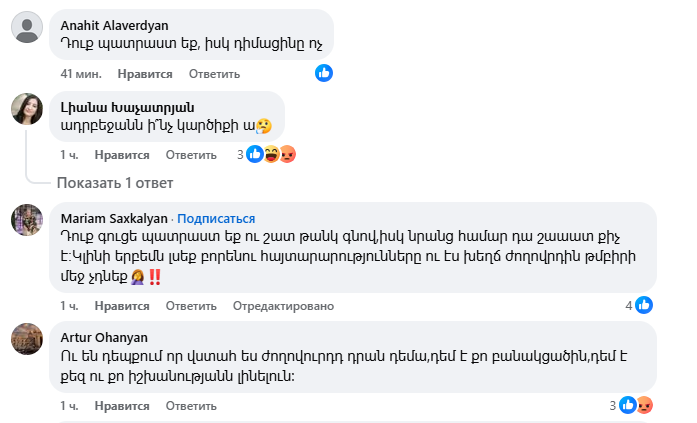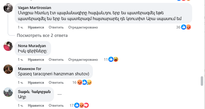 Այս գրառման տակ բազմաթիվ մեկնաբանություններ են, հիմնականում՝ ծաղր, քննադատություն, հայհոյանքներ։