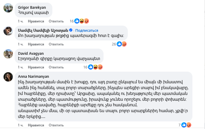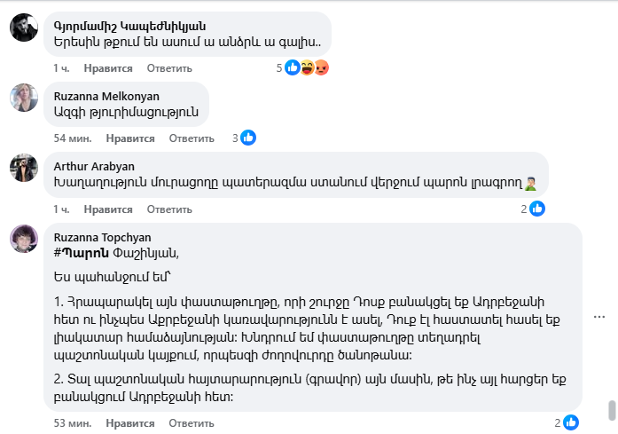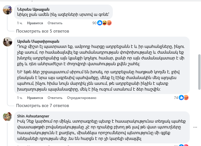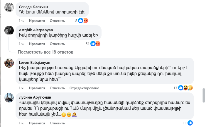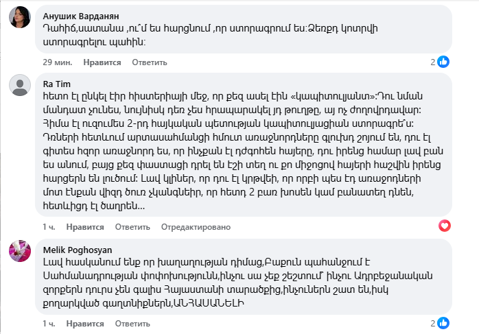 Ֆեյսբուքյան օգտատերերը հայհոյանքով են պատասխանում Փաշինյանի՝ ստորագրելու պատրաստակամությանը