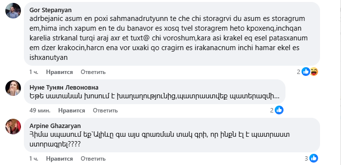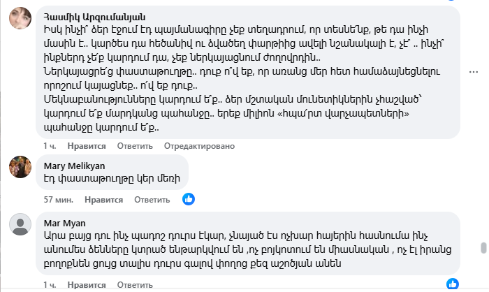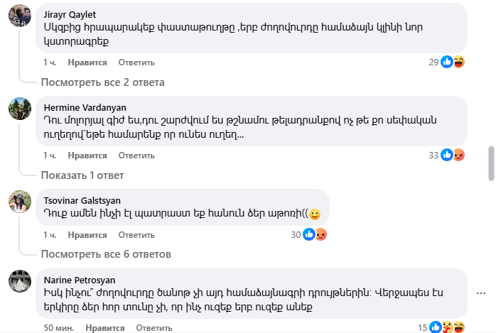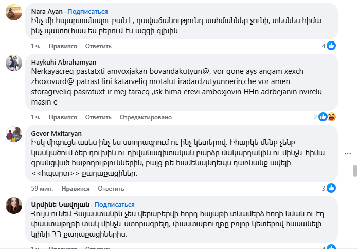 Yerevan.Today-ը հրապարակում է բազմաթիվ քննադատական մեկնաբանություններից ընդամենը մի քանիսը։