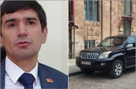 Արագածոտնի մարզպետի ծառայողական մեքենան Գյումրու ՔՊ կենտրոնական շտաբի մոտ