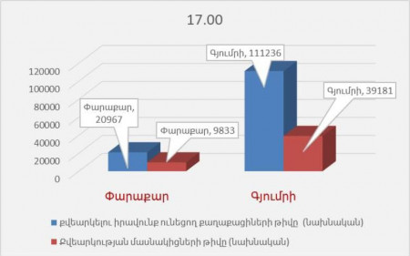 Ժամը 17:00-ի դրությամբ՝ Գյումրու արտահերթ ընտրություններին մասնակցել է 39181 ընտրող