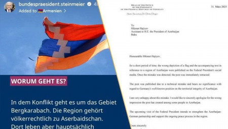 «Խայտառակություն է, երբ Գերմանիայի Դաշնային Հանրապետության նախագահ Ֆրանկ-Վալտեր Շտայնմայերի Հայաստան պաշտոնական այցի օրը, Գերմանիայի նախագահականի աշխատակազմի ղեկավարը ամոթալի մի գրություն է ուղարկում Հիքմեթ Հաջիևին, ներողություն խնդրում, որ սխալմունքի պատճառով Արցախի դրոշի պատկերը տեղ է գտել նախագահի սոցցանցային տիրույթում։