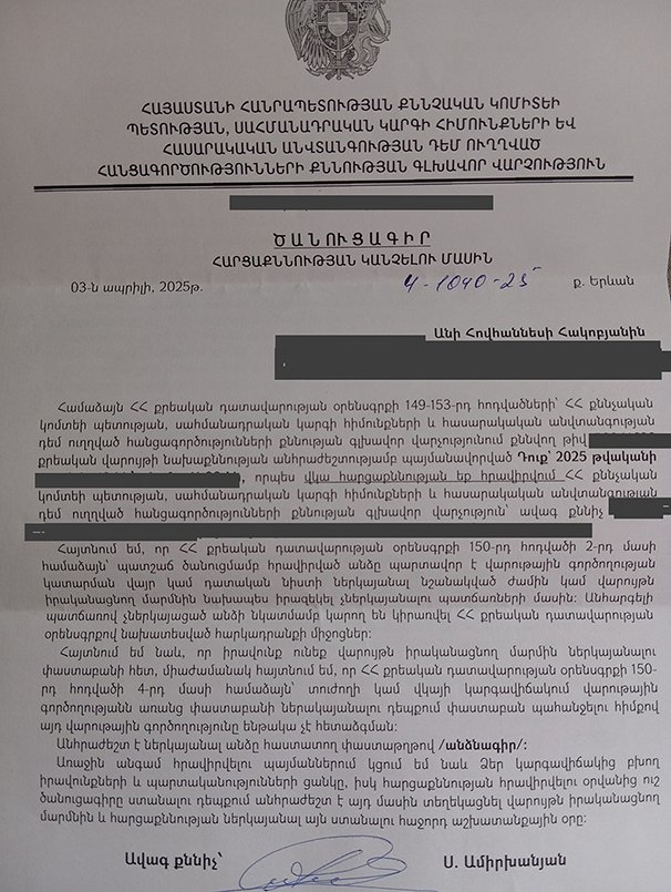 Զանգեցի, ասացին` Ավետիք Իշխանյանի գրառմանն եք հավանություն տվել. երիտասարդ աղջկան ՔԿ են կանչել