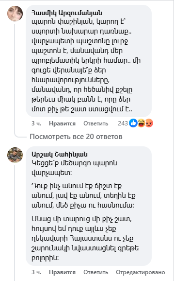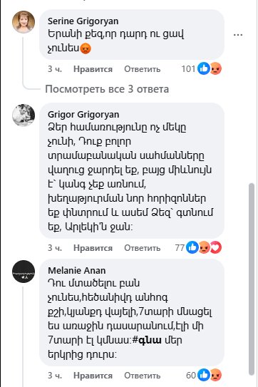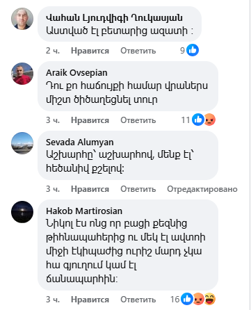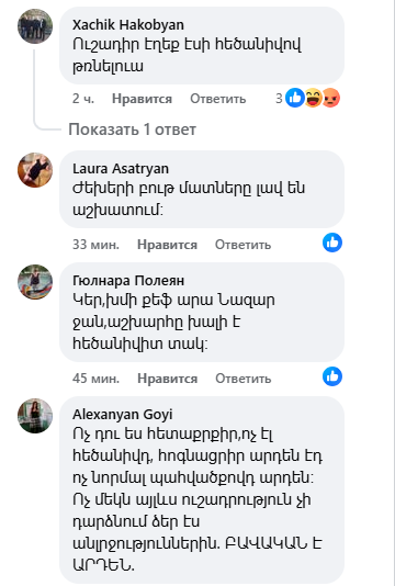Yerevan.Today-ը հասցրել է մինչ ժողովրդի մեկնաբանությունները ակտիվ մաքրելը, որոշ գրառումներ առանձնացնել։