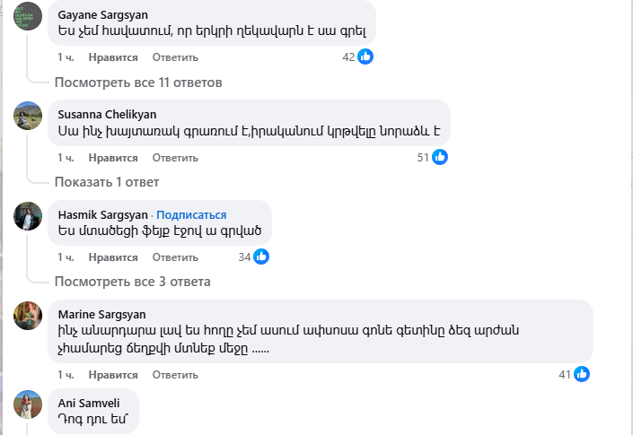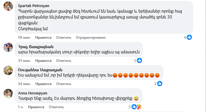 Փաշինյանի գրառումը զայրացրել է ժողովրդին, ովքեր հայհոյանքով ու վիրավորանքներով են պատասխանում Փաշինյանին։